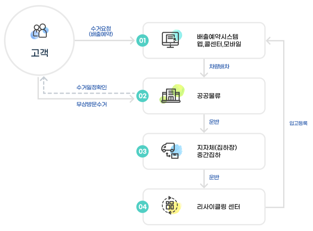 e순환거버넌스 사업의 하나로 별도의 가입이나 수수료를 낼 필요없이, 수거 기사가 직접 가정을 방문하여 폐가전제품을 수거해주는 서비스입니다.